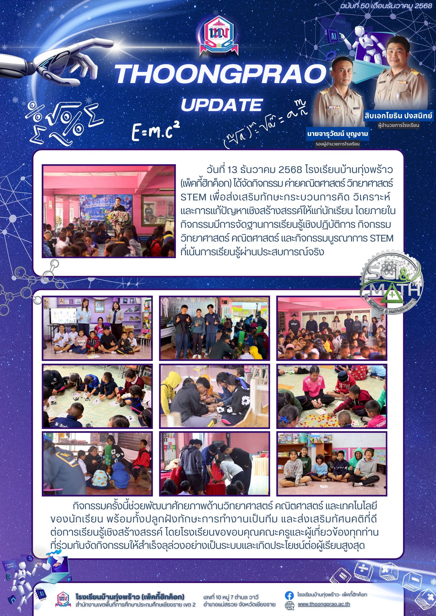 กิจกรรม ค่ายคณิตศาสตร์ วิทยาศาสตร์ STEM เพื่อส่งเสริมทักษะกระบวนการคิด วิเคราะห์ และการแก้ปัญหาเชิงสร้างสรรค์ให้แก่นักเรียน