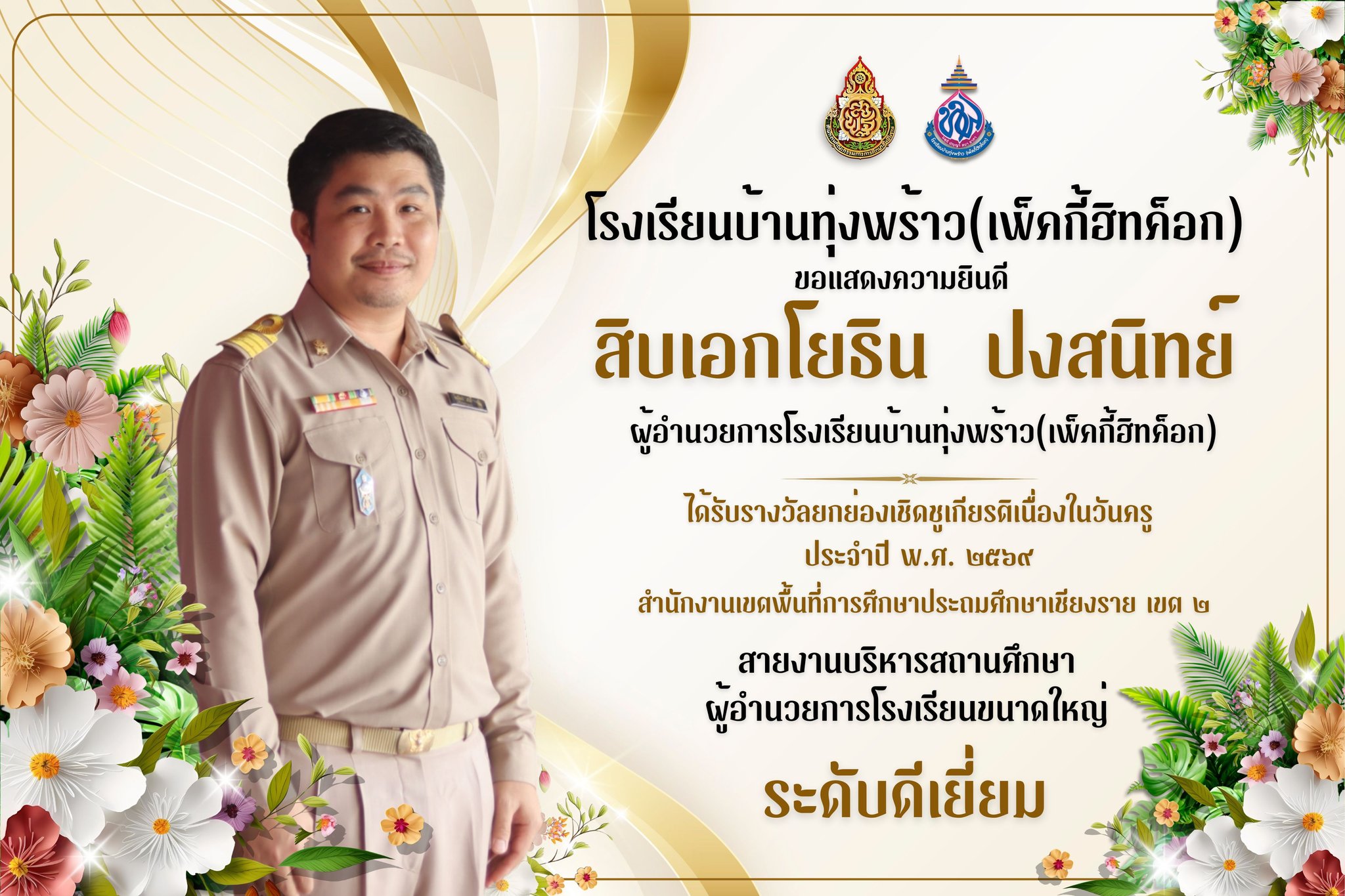 ขอแสดงความยินดีกับ สิบเอกโยธิน ปงสนิทย์ ในโอกาสได้รับ รางวัลยกย่องเชิดชูเกียรติเนื่องในวันครู ประจำปี พ.ศ. 2569