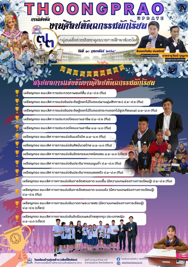 นักเรียนเข้าร่วมการแข่งขันงานศิลปหัตถกรรมนักเรียน ครั้งที่ ๗๓ ระดับศูนย์เครือข่ายพัฒนาคุณภาพการศึกษาห้วยไคร้ ณ โรงเรียนบ้านห้วยน้ำเย็นข่าวประชาสัมพันธ์ / 11/02/2026